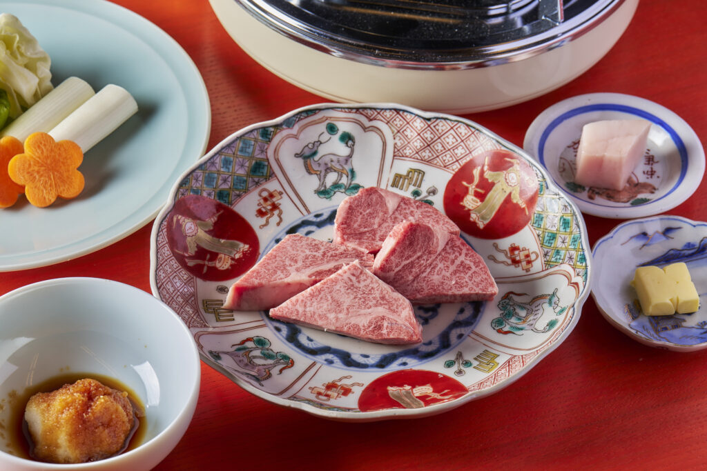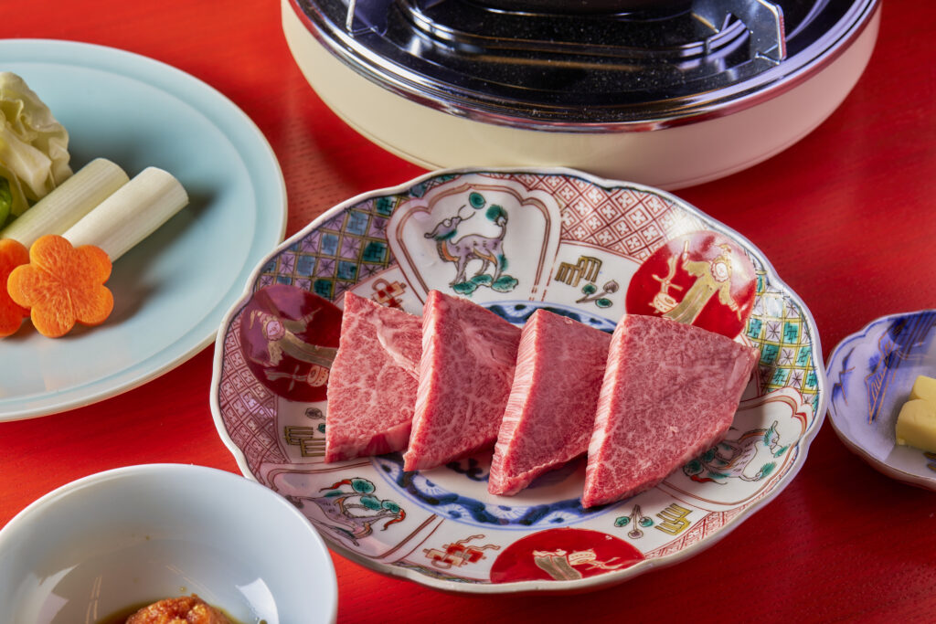 当店では最高等級「A5ランク」の黒毛和牛を厳選使用。特に美しい霜降りBMS10以上のみを扱い、脂の甘みと旨味がとろける味わい。