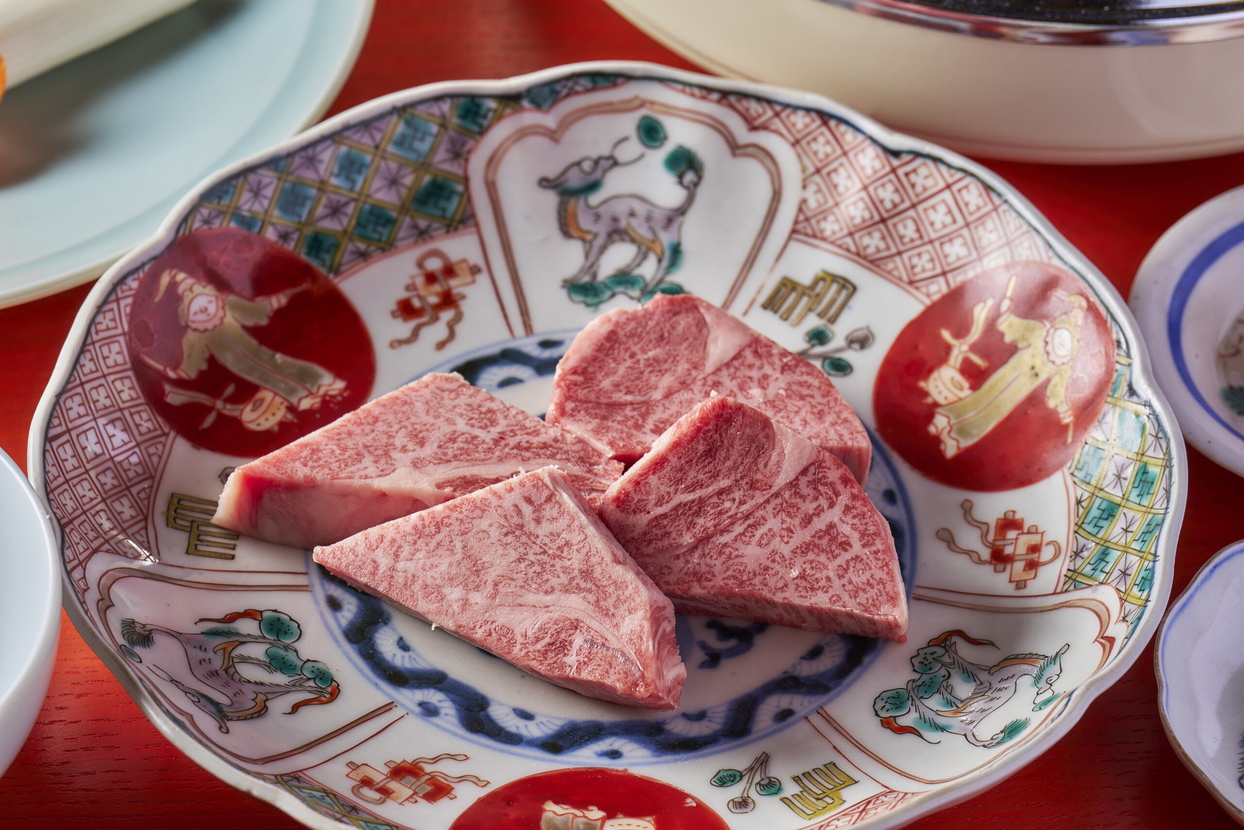 当店では最高等級「A5ランク」の黒毛和牛を厳選使用。特に美しい霜降りBMS10以上のみを扱い、脂の甘みと旨味がとろける味わい。