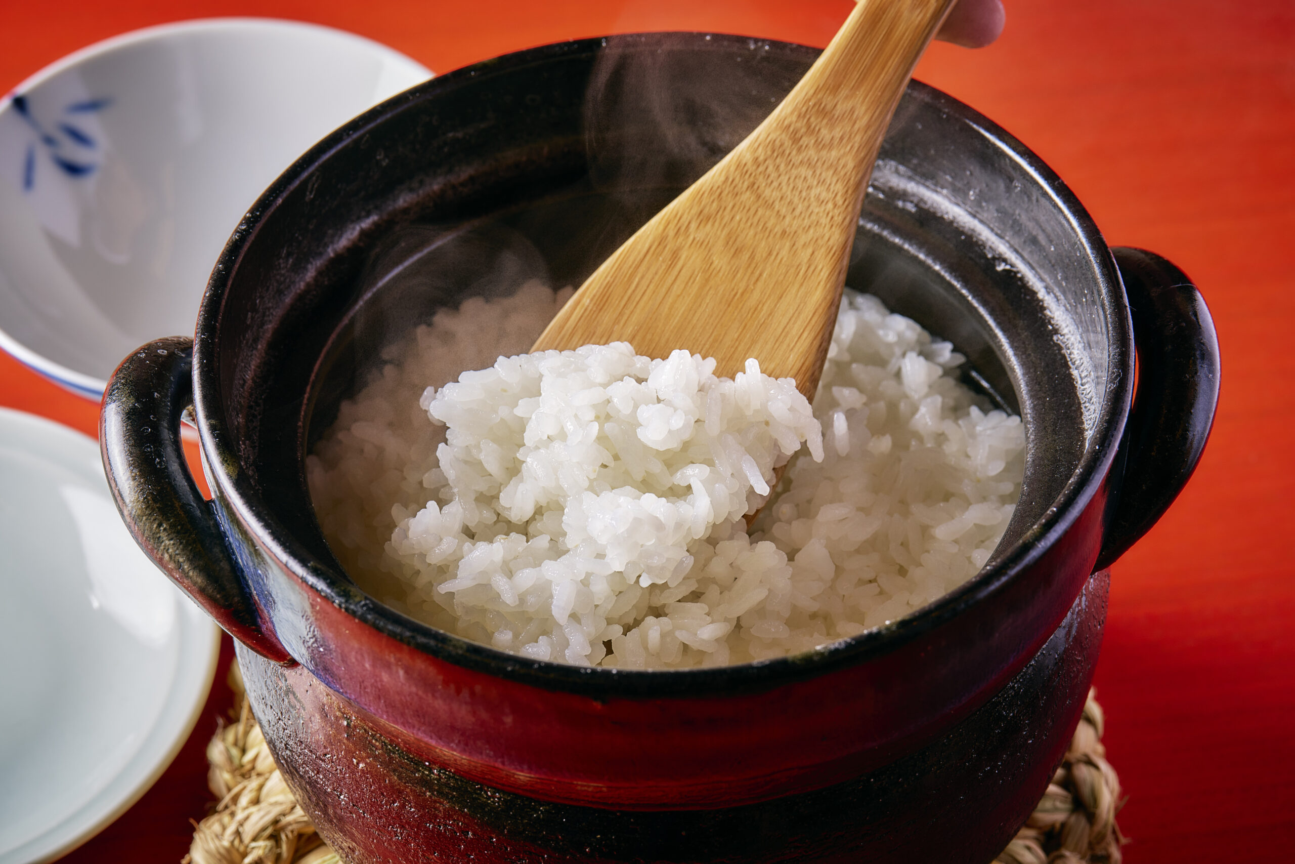 京都の老舗米屋がすき焼きのために調合した特製ブレンド米。1%刻みのブレンド技術で引き出した甘みと旨味を、土鍋でふっくら炊き上げてお届けします。